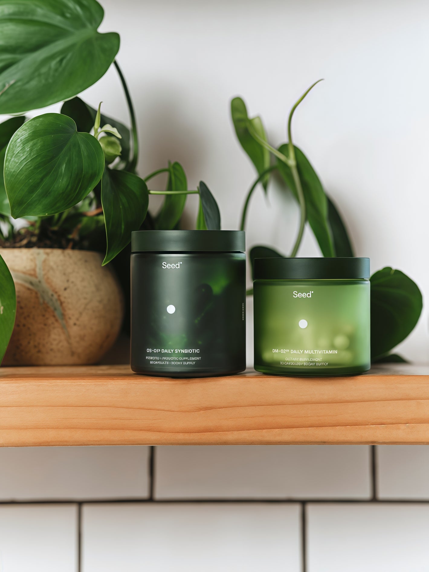 Clinically proven daily probiotic and new daily multivitamin that help cover nutrient gaps, reduce bloating, and promote healthy regularity.*